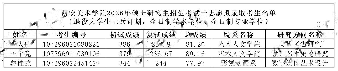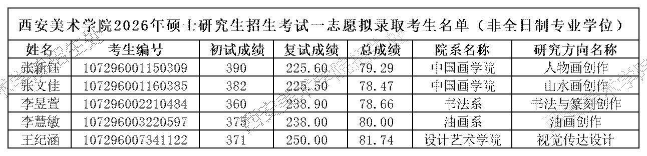 四、西安美术学院2026年硕士研究生招生考试一志愿拟录取考生名单(附后)